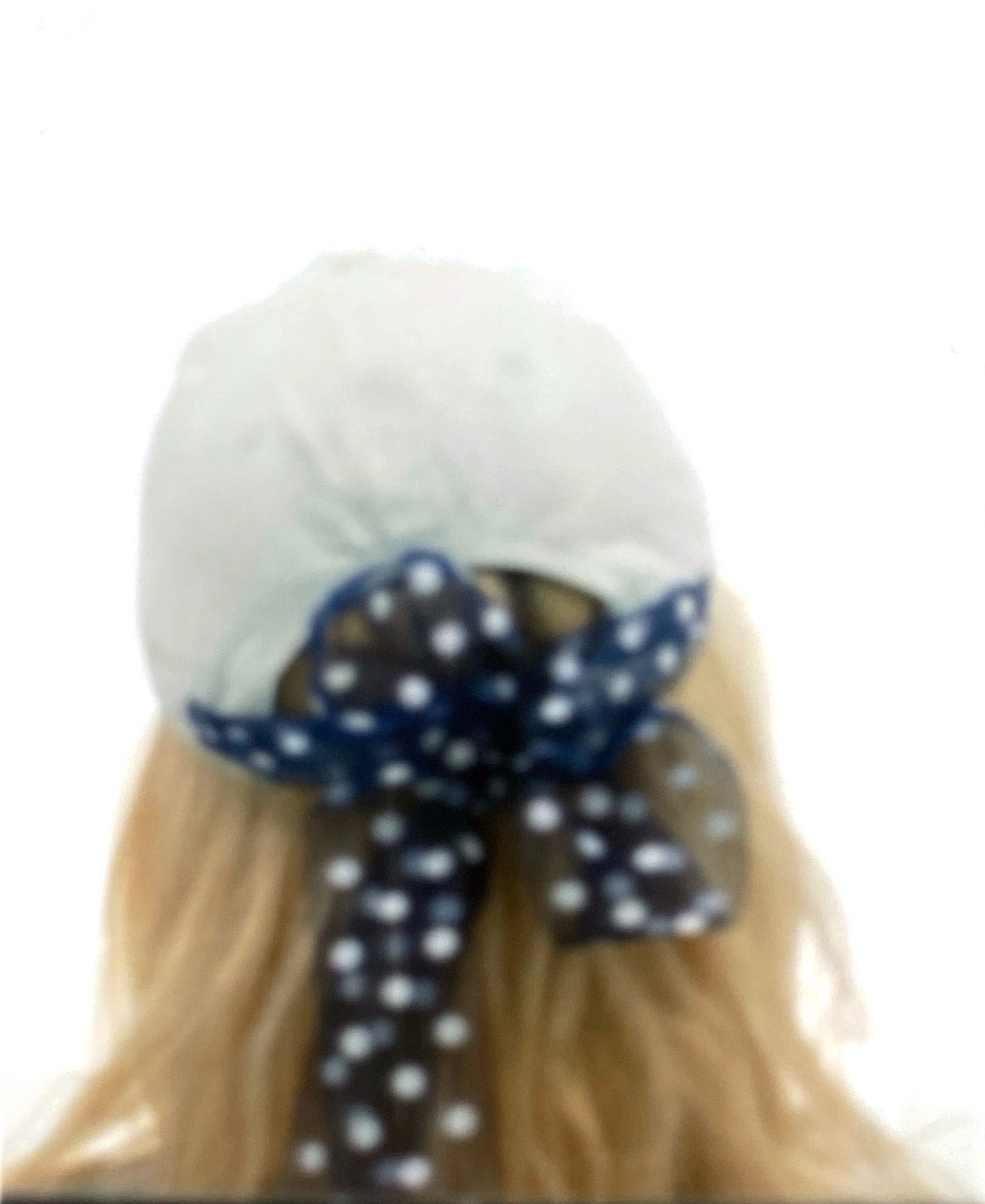 A classic Hiello cap with a twist — fresh mint cotton and a removable polka–dot organza bow so you can tie it, untie it, or style it your way.