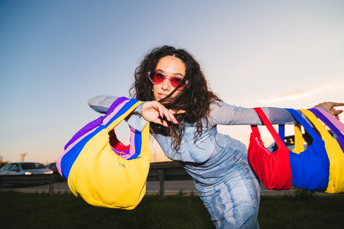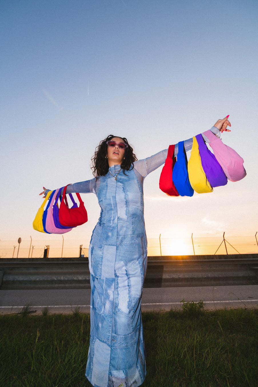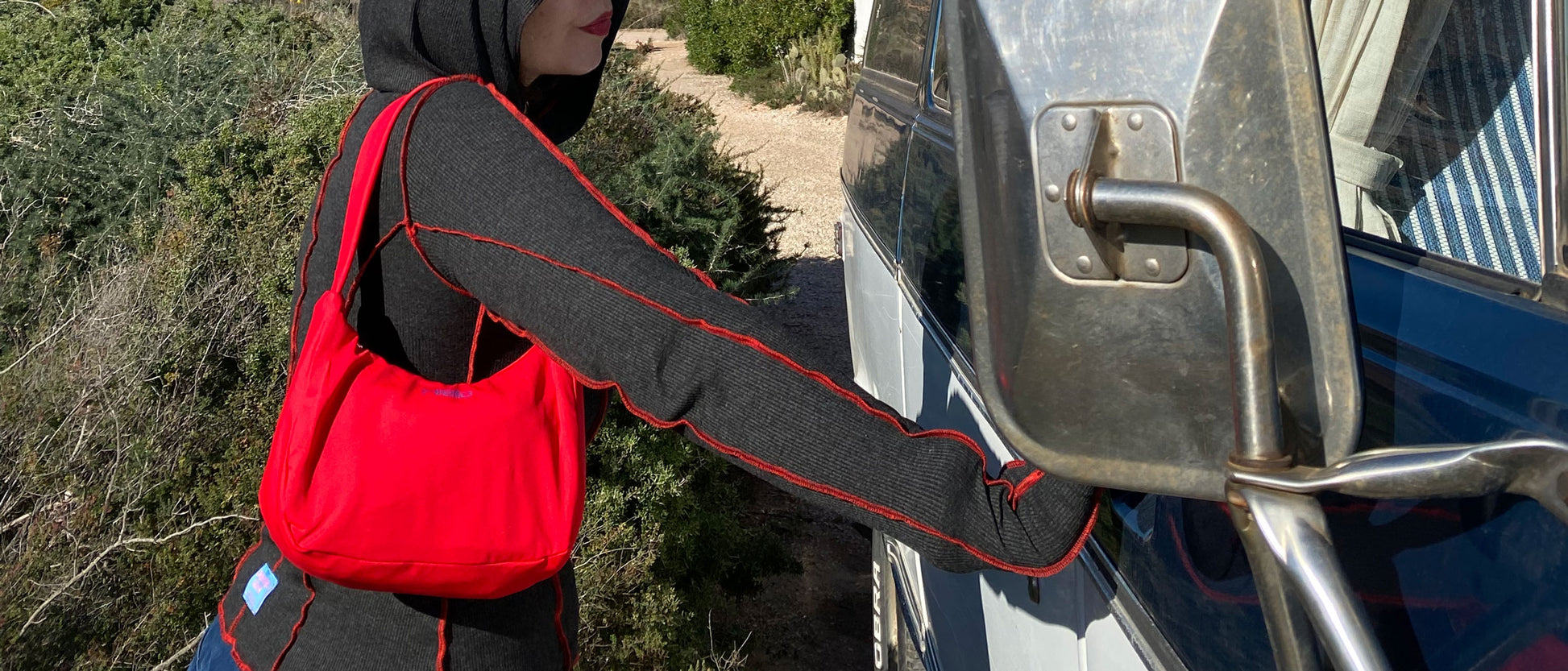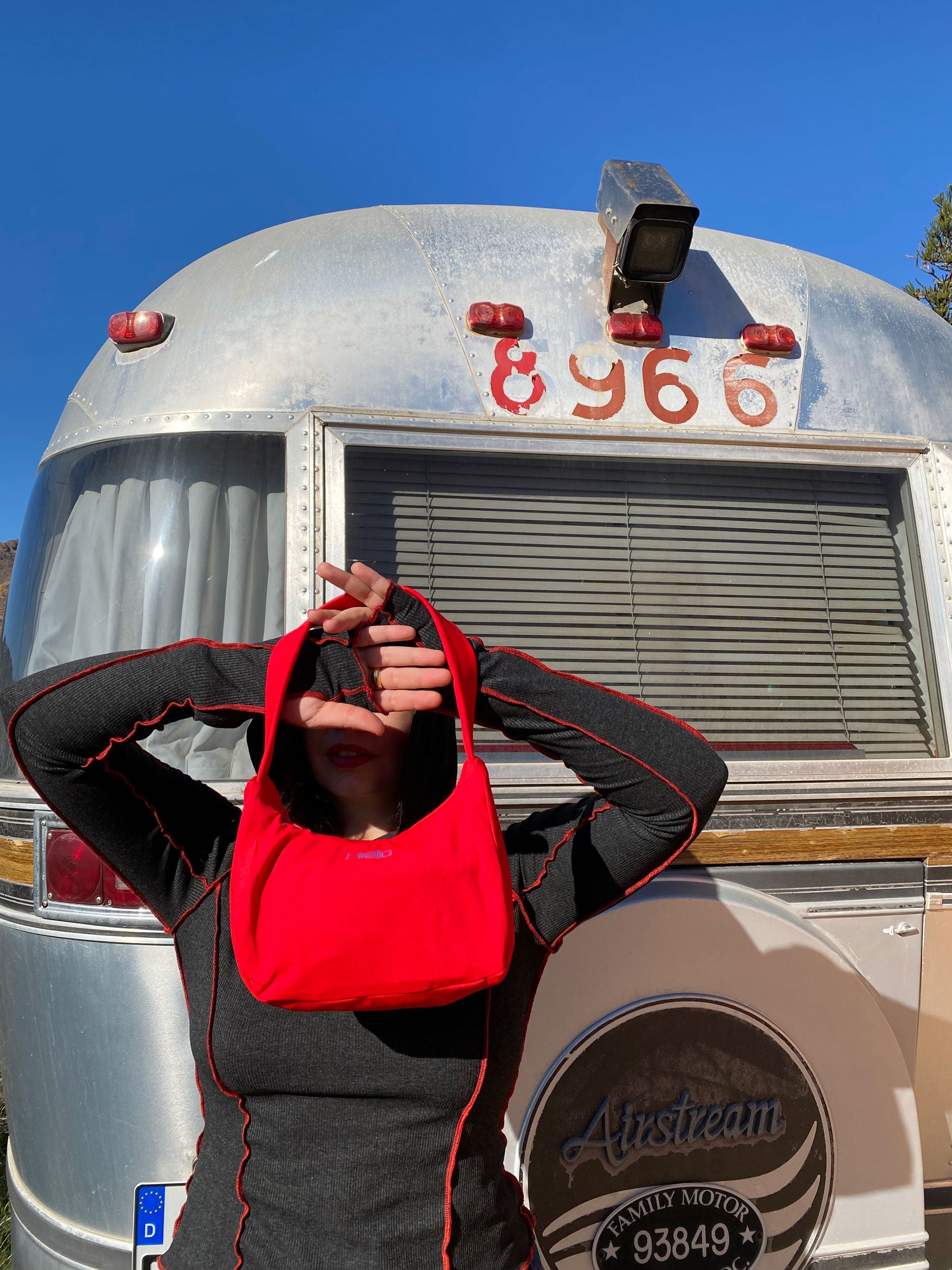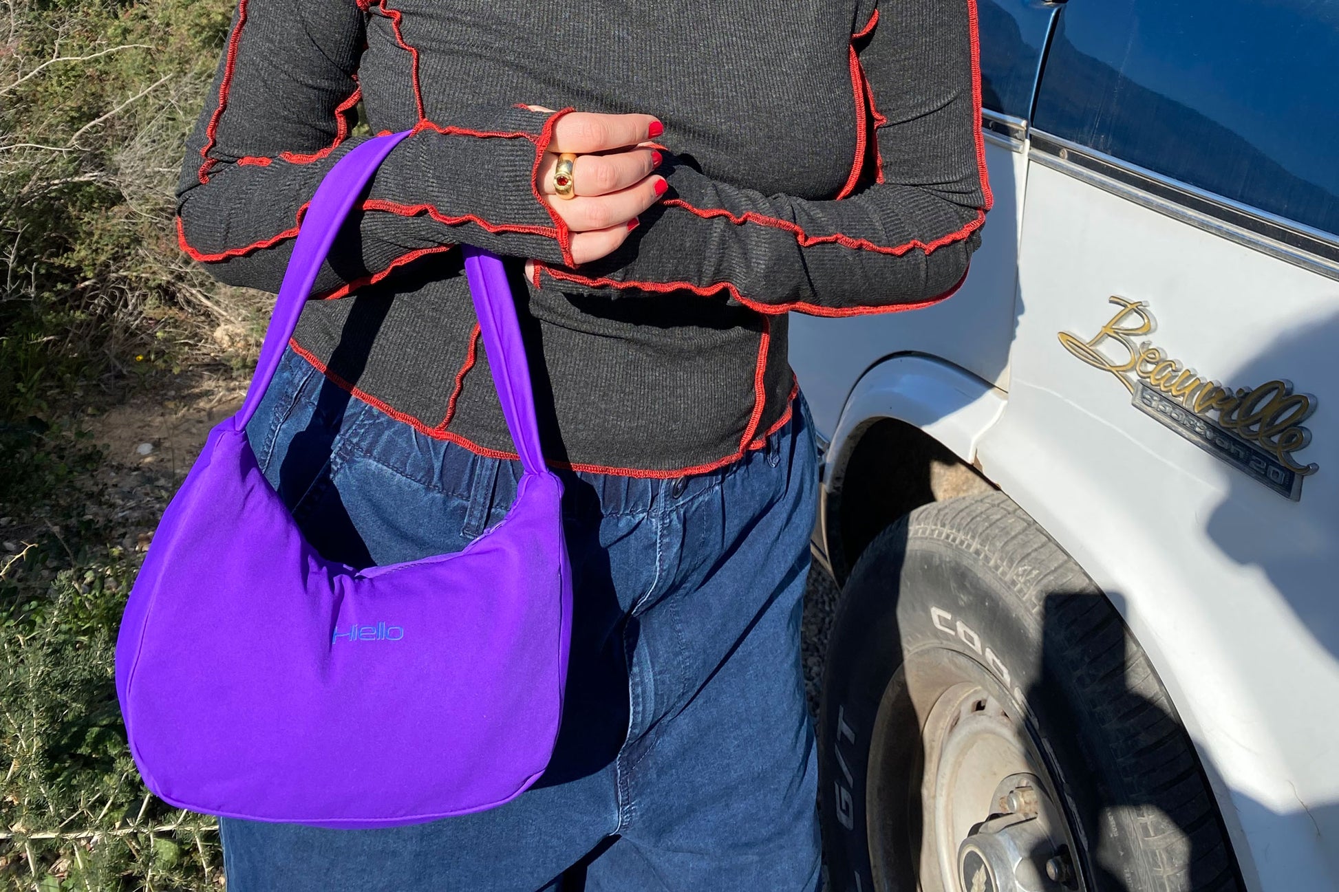 Shoulder bag made with our iconic swimwear fabric. YKK zipper made with recycled plastics, 100% cotton lining and inner pocket. Now available in purple and red. It's super soft, light and easy to wash (you can put it directly on the wash machine or clean it by hand) . The most comfortable bag to carry all the daily things inside (and more, I swear).