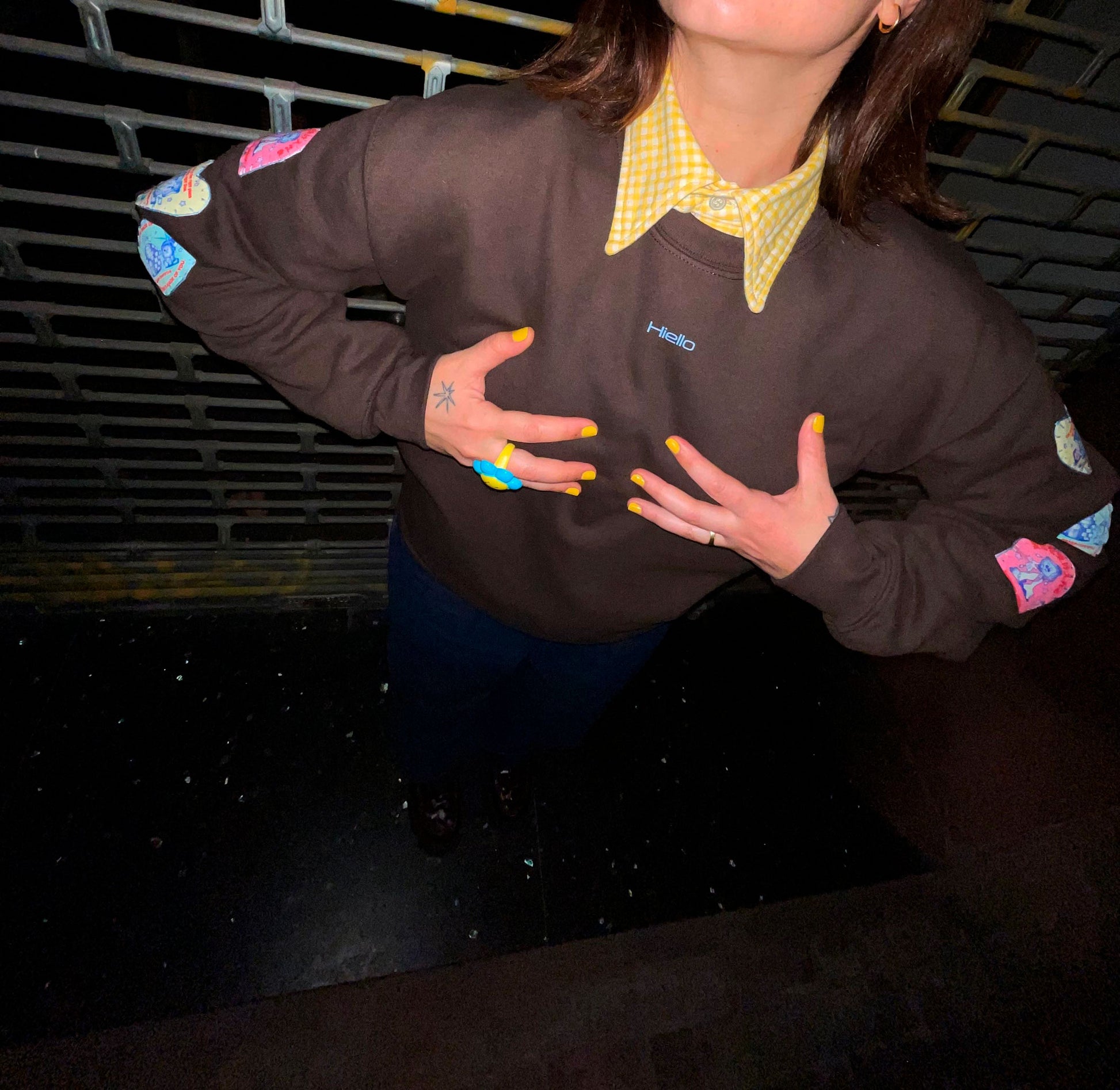 Say hello to part 3 of our drop with the amazing Irene Fresh. Limited edition of hand-embroidered sweatshirts with a sublimated patch, handcrafted. Super soft pieces in brown and light blue logo with our mascot Yeli <3 The sweatshirt has the same fit as the Yeli Sweatshirt